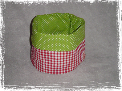 Brot- bzw. Utensilienkörbe aus Baumwollstoff. Zur Stabilisierung mit Vlies gefüllt. Die kleinen Brotkörbe haben einen Durchmesser von ca. 16 cm die größeren von ca. 22 cm. Die Höhe beträgt ca. 15 cm.
