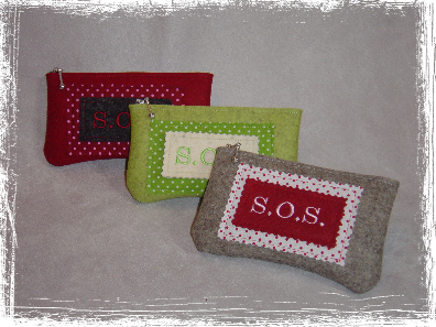 Reiseapotheken-Täschchen aus 100 % Wollfilz in verschiedenen Farben mit Textstickerei. Die Täschchen sind standardmäßig ca. 20 x 13 cm groß und haben einen schönen Reißverschluß mit silberfarbenem Schieber.