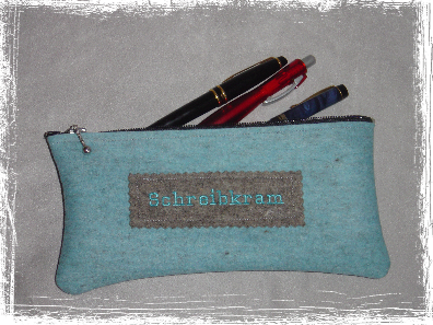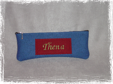 Federtaschen aus 100 % Wollfilz in verschiedenen Farben mit Textstickerei oder Webband. Die Täschchen sind standardmäßig ca. 17 x 10 cm groß und haben einen schönen Reißverschluß mit silberfarbenem Schieber.