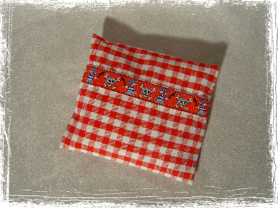 Süsse Kirschkernkissen aus Baumwollstoff, verziert mit einem Webband. Die Außenhülle hat einen Hotelverschluss. Das innere Kirschkernkissen ist aus 100 % Baumwolle und mit Kirschkernen gefüllt. Dieses kann in der Mikrowelle oder im Ofen erhitzt werden. Die Kirschkernkissen sind ca. 10 x 10 cm groß, können aber natürlich auch in anderen Größen gefertigt werden.